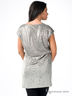 Трикотажная футболка свободного силуэта. Украшена блестящим набивным рисунком, имитирующим пайетки.