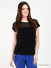 Стильная футболка из плотного хлопкового трикотажа. Округлый вырез горловины. Короткие цельнокроеные рукава. На полочке крупная вставка из легкого, полупрозрачного материала. Отлично будет сочетаться с джинсами.