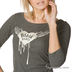 Стильная трикотажная футболка с круглым вырезом горловины и рукавами 3/4. На груди оригинальный принт, украшенный декоративными элементами.
