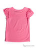 Футболка выполнена из стрейчевой приятной к телу ткани. Короткие рукава в форме крылышек украшены рюшами. Модель декорирована оригинальным принтом. В такой футболке будет удобно и комфортно в летние дни!