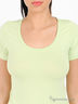 Детали: округлый вырез горловины дополнен трикотажной лентой, короткий прямой рукав