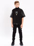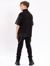 Футболка прямого кроя с коротким рукавом, воротником стойка. Модель декорирована вставками из эко-кожи.