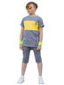 Футболка прямого кроя с коротким рукавом, круглым вырезом. Модель дополнена вставками.
