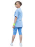 Футболка прямого кроя с коротким рукавом, круглым вырезом. Модель дополнена вставками.