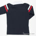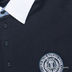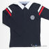 Футболка поло с длинным рукавом, белым воротником и бело-красными полосами на рукавах.