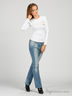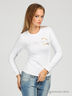 Классическая футболка из трикотажной хлопковой ткани с длинным рукавом. Неглубокий округлый вырез горловины. Декоративная прострочка контрастной нитью горловины, низа рукавов и низа изделия. На полочке нашивка-аппликация с металлическими клепками.
