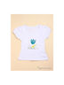 Очаровательная футболка с короткими рукавами и округлым выре0зом горловины. Модель декорирована спереди принтом в виде цветка. Модель выполнена из качественного материала контрастной расцветки. Отличный вариант на каждый день.длина - 31 см, полуобхват подмышки - 26 см, длина рукава - 9 см