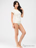 Детали: круглый вырез дополнен резинкой; короткий рукав; на полочке аппликация