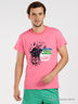 Детали: округлый вырез горловины дополнен трикотажной лентой в рубчик, короткий прямой рукав, полочка декорирована набивным рисунком