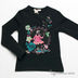 Футболка с длинным рукавом из тонкой трикотажной ткани. Округлый вырез горловины дополнен трикотажной лентой. Полочка декорирована ярким набивным рисунком.