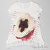 Стильная удлиненная футболка с оригинальным рисунком спереди и оборкой из органзы сзади, что создает летящий эффект. Рисунок отделан камнями, ворот круглый, рукав - крылышко.