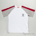 Футболка прямого кроя с контрастными рукавами и вставками на них. Полочка украшена аппликацией.