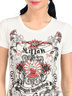 Детали: округлый вырез горловины, короткий рукав, полочка украшена аппликациями