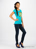Элегантная футболка из тонкого трикотажа отлично подойдет как для прогулок на свежем воздухе, так и для спорта. Приятная на ощупь ткань. Спереди футболка украшена аппликацией из тонких пластиковых пластин. Горловина обработана трикотажной лентой.