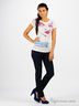 Элегантная футболка из тонкого трикотажа отлично подойдет как для прогулок на свежем воздухе, так и для спорта. Приятная на ощупь ткань. Спереди футболка декорирована набивным рисунком. Горловина обработана трикотажной лентой.