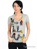 Детали: V-образный вырез, короткий рукав, полочка украшена аппликациями