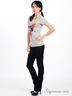 Детали: округлый вырез горловины, короткий рукав; полочка украшена аппликациями, пайетками и стразами