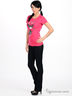 Детали: округлый вырез горловины, короткий рукав; полочка украшена аппликацией, стеклярусом, стразами, пайетками, сетчатой вставкой и атласным бантиком