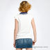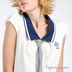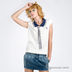 Женская футболка прямого силуэта. Круглая горловина. Отложной воротник. В горловину вшит трикотажный галстук. Короткие рукава.