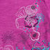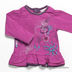 Футболка прямого кроя с длинным рукавом застегивается на спинке на три пуговицы. Многоядная резинка вставлена на плечиках. К нижней части изделия пришиты оборки. Полочка декорирована аппликацией, вышивкой, вязаным цветком, пуговкой и паетками.