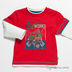 Футболка прямого кроя с длинным рукавом и эффектом двойки. Полочка украшена крупной аппликацией. Контрастная прострочка.