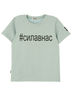 Футболка с коротким рукавом, в горловине манжет. Спереди модный принт. Изготовлена из кулирки с эластаном.