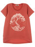 Футболка с укороченным передом. Спереди стильный принт со стразами. Рукава короткие. Изготовлена из кулирки с эластаном.