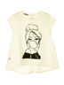 Футболка с коротким рукавом, по переду стильный принт. По спинке декоративная застежка на пуговицы. Изготовлена из кулирки с эластаном.
