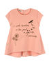 Футболка с коротким рукавом, по переду стильный принт. По спинке декоративная застежка на пуговицы. Изготовлена из кулирки с эластаном.