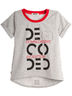Футболка-туника с коротким рукавом, перед укорочен. По переду стильный принт. Рукава с подворотами. Изготовлена из кулирки с лайкрой.