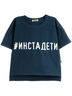 Футболка со спущенный плечом, перед укорочен, свободного силуэта. По переду стильный принт. Изготовлена из кулирки с эластаном.