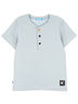 Футболка с коротким рукавом, планка с застежкой на пуговицы. Изготовлена из кулирки с эластаном.