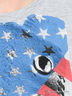 Детали: округлый вырез горловины, короткие рукава, стильный принт кеда с американским флагом на полочке.