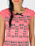 Футболка трикотажная. Широкий округлый вырез с декоративной атласной ленточкой-бантиком. Рукав-реглан декорирован трикотажными рюшами. Рисунок-принт по всей длине изделия.