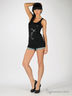 Майка трикотажная. Без рукавов. Глубокий округлый вырез и проймы оформлены трикотажной резинкой в мелкий рубчик. Декоративная сборка у горловины. Изделие декорировано рисунком-принтом.
