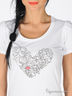 Футболка трикотажная. Классический крой. Округлый вырез горловины. Короткий рукав присборен у основания. Изделие декорировано рисунком-принтом и стразами.