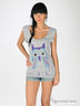 Футболка из мягкого трикотажа. Прямой крой. Глубокий округлый вырез. Короткий рукав с отворотом. Кокетка на спинке с декоративным оформлением. Изделие украшено большим рисунком-принтом.