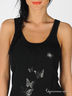 Майка трикотажная. Без рукавов. Глубокий округлый вырез и проймы оформлены трикотажной резинкой в мелкий рубчик. Декоративная сборка у горловины. Изделие декорировано рисунком-принтом.