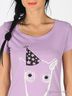 Футболка трикотажная. Классический крой. Короткий рукав. Декорирована рисунком-принтом, дополненным пуговицами и стразами.