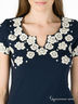 Приталенная трикотажная футболка. Короткие рукава. Фигурный вырез. Рукава и полочка украшены декоративной вышивкой и бусинами, имитирующими жемчуг.