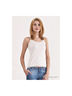 Футболка прямого кроя на тонких бретелях с кружевной отделкой по краям изделия.