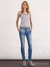Футболка прямого кроя на тонких бретелях с кружевной отделкой по краям изделия.