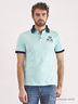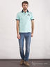 Отличное поло из хлопкового трикотажа. Стояче-отложной ворот. Застежка на пуговицы. Короткие рукава. Ворот и манжеты рукавов дополнены контрастной полосой. На полочке небольшой рисунок. Разрезы в боковых швах.
