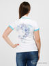 Детали: отложной воротник, застежка на пуговицы, короткие рукава с окантовкой, стильный принт на спинке.