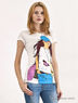 Великолепная футболка из высококачественного материала. Широкий округлый вырез горловины. Короткие облегающие рукава. На полочке крупный красочный печатный рисунок.