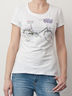 Детали: вырез лодочка горловины, короткие прямые рукава, на полочке принт велосипед со стразами.