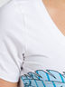 Футболка с короткими рукавами и округлым вырезом горловины. Модель облегающего фигуру кроя дополнена принтом спереди. Отличный вариант на каждый день.