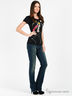 Стильная футболка с короткими рукавами и округлым вырезом горловины. Приталенный силуэт. Выполнена из слегка эластичного хб материала. Полочка украшена оригинальным принтом и аппликациями. Прекрасный повседневный вариант!