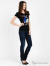 Модная футболка с округлым вырезом горловины и коротким рукавом. Полочка украшена принтом и разнообразными элементами. Отличный вариант для создания стильного образа.