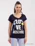 Футболка - незаменимая вещь в базовом гардеробе любой современной девушки. Модель с округлым вырезом горловины и короткими рукавами. Оригинальный принт украшает изделие.